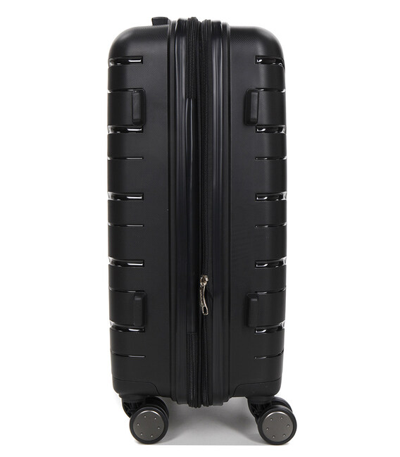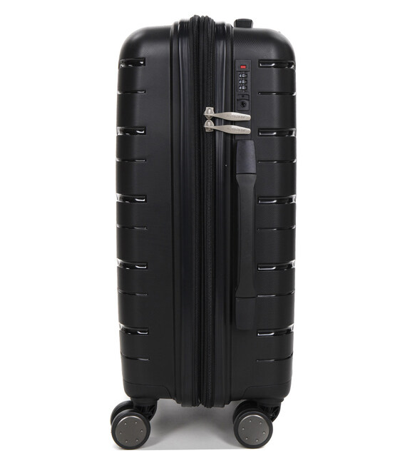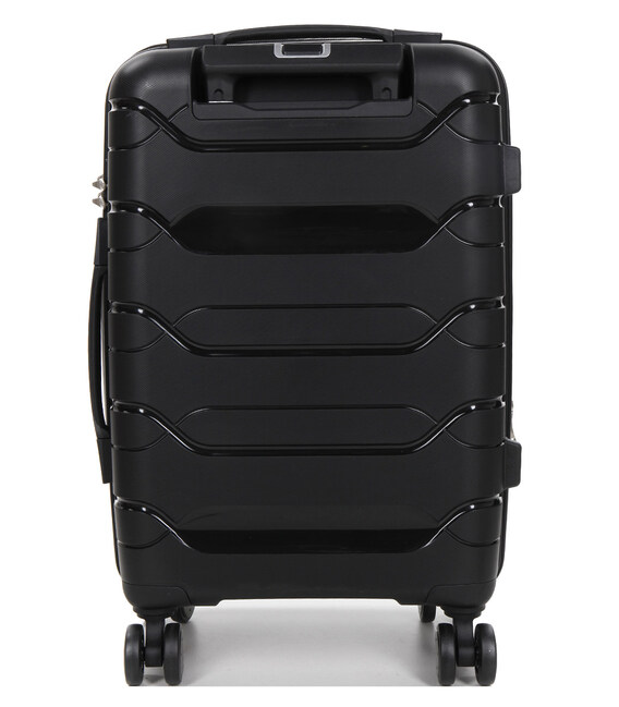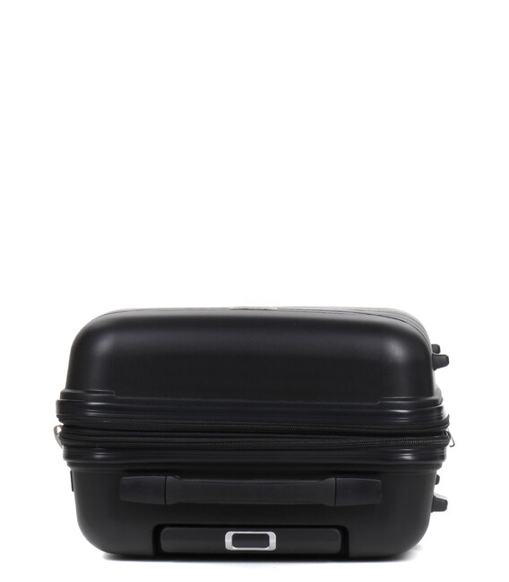 - Чемодан оснащен телескопической ручкой с кнопкой регулировки высоты, также есть ручки на боковой и верхней поверхности, выполненные из пластика, для удобства переноски.
