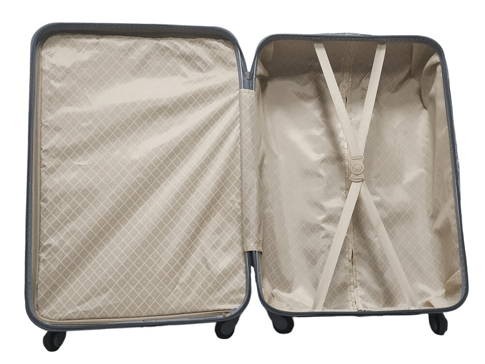 Легкая модель изготовлена из ABS-пластика. Чемодан имеет шероховатую поверхность, на которой практически не видно царапин. Модель оснащена выдвижной ручкой, кодовым замком и четырьмя колесами, вращающимися на 360 градусов. Внутри есть два отдела, которые разделяются перегородкой на молнии.