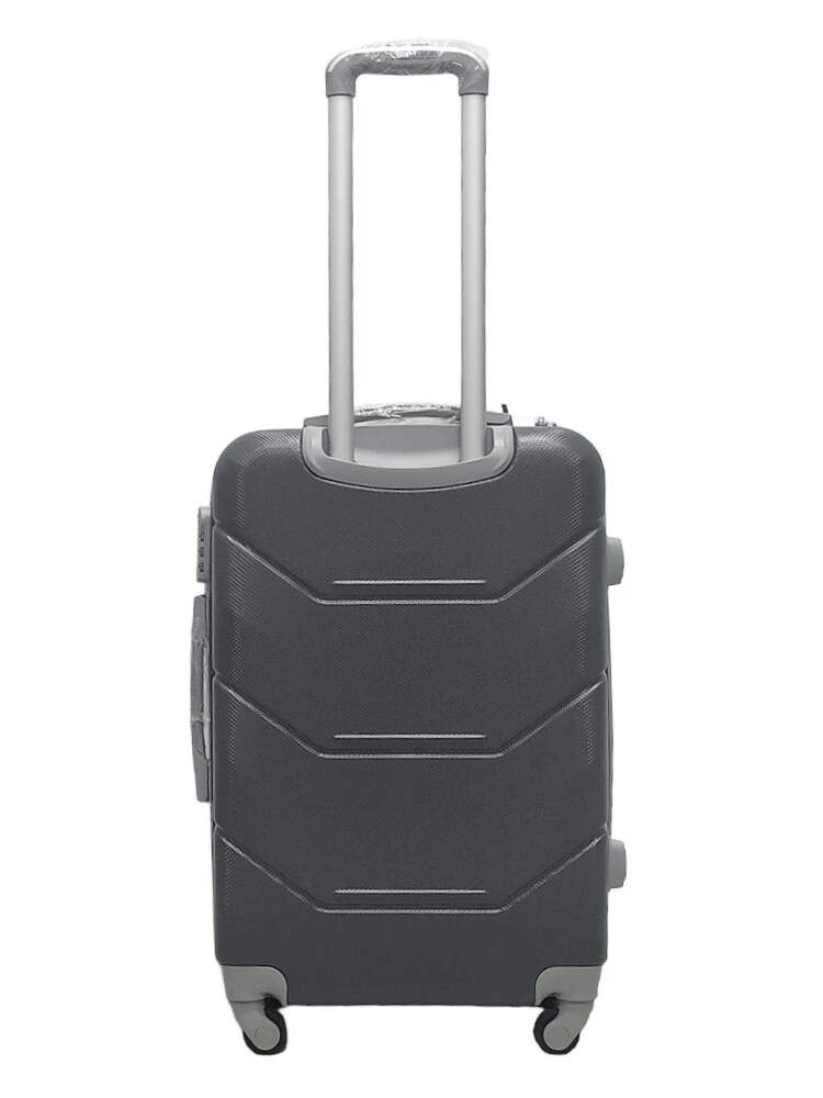Легкая модель изготовлена из ABS-пластика. Чемодан имеет шероховатую поверхность, на которой практически не видно царапин. Модель оснащена выдвижной ручкой, кодовым замком и четырьмя колесами, вращающимися на 360 градусов. Внутри есть два отдела, которые разделяются перегородкой на молнии.