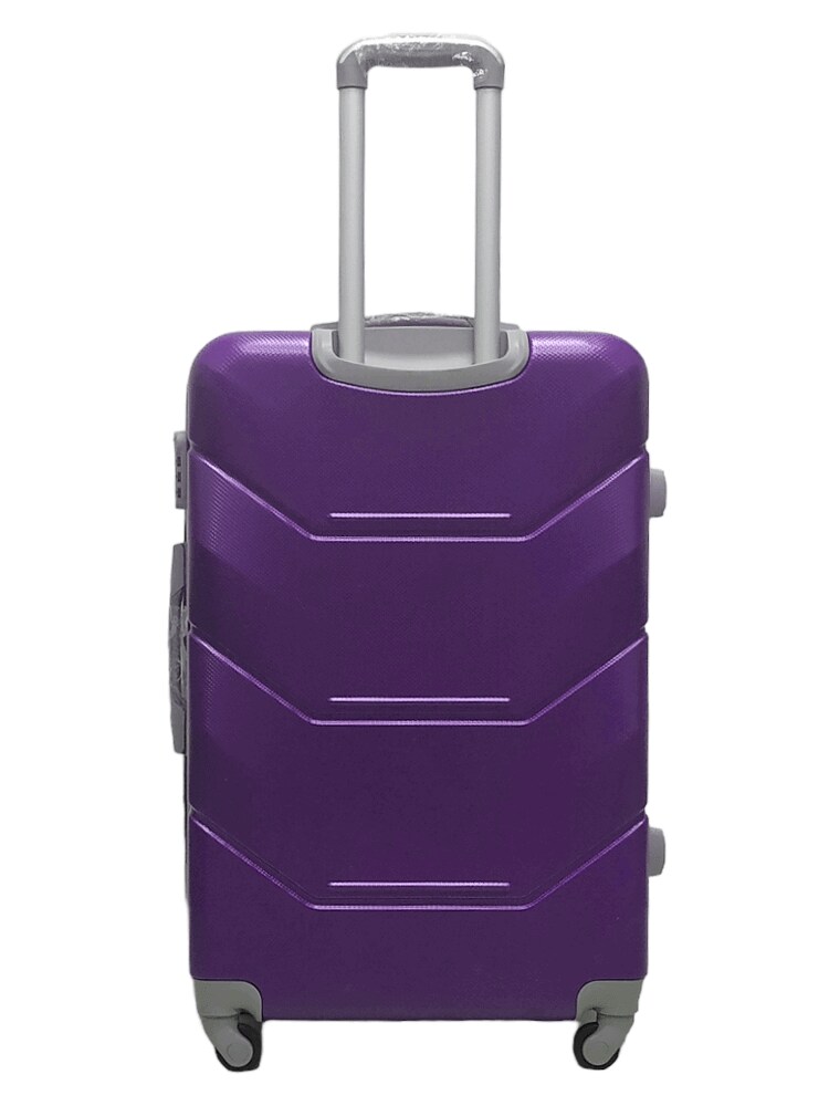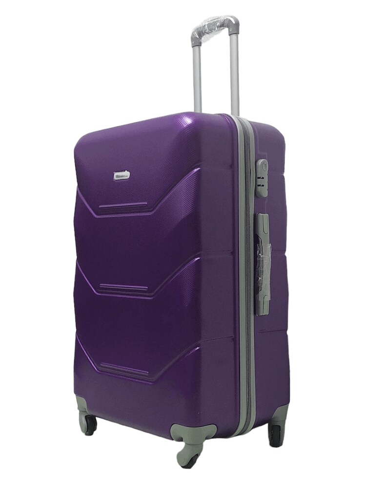 Легкая модель изготовлена из ABS-пластика. Чемодан имеет шероховатую поверхность, на которой практически не видно царапин. Модель оснащена выдвижной ручкой, кодовым замком и четырьмя колесами, вращающимися на 360 градусов. Внутри есть два отдела, которые разделяются перегородкой на молнии.
