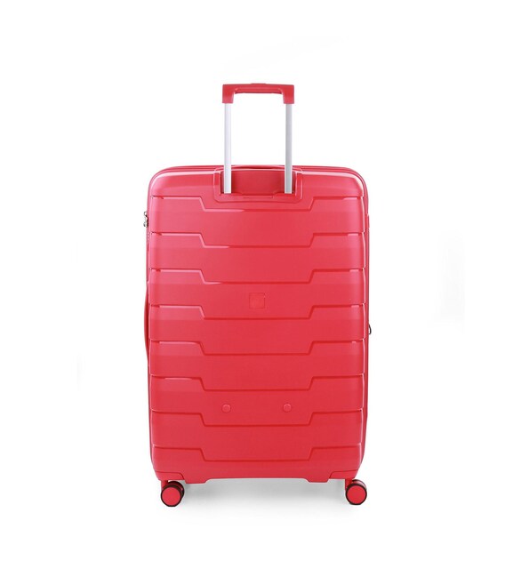 Большой чемодан оснащен 4 спаренными, бесшумными и маневренными колесами. Для удобства перемещения предусмотрены эластичные, подъемные пластиковые ручки на верхней и боковой панелях, а также телескопическая ручка. Безопасность и сохранность багажа обеспечивает встроенный кодовый замок с системой TSA. Чемодан закрывается на молнию и имеет отличную внутреннюю организацию.