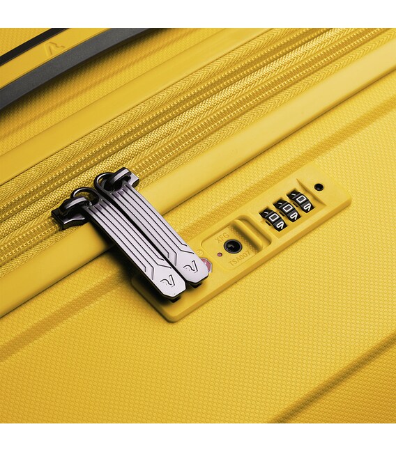 Средний чемодан оснащен 4 спаренными, бесшумными и маневренными колесами. Для удобства перемещения предусмотрены эластичные, подъемные пластиковые ручки на верхней и боковой панелях, а также телескопическая ручка. Безопасность и сохранность багажа обеспечивает встроенный кодовый замок с системой TSA. Чемодан закрывается на молнию и имеет отличную внутреннюю организацию.