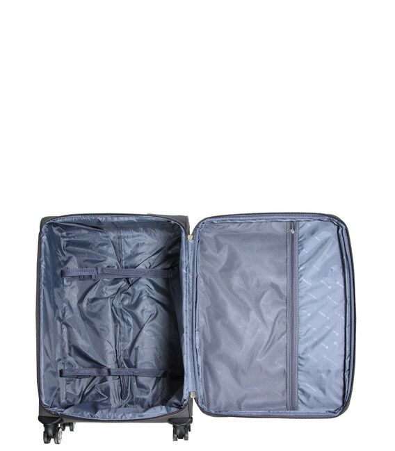 Четырехколесный чемодан Worldline Agadir имеет вместительное отделение с текстильной подкладкой, образующей эффективную защиту от влажности окружающей среды, и 4 регулируемых фиксирующих ремня, предотвращающих появление складок на хорошо сложенном белье. Большой сетчатый карман можно использовать для хранения туалетных принадлежностей, белья, шарфов... Снаружи есть 2 других кармана на молнии, которые позволяют оставить некоторые личные вещи доступными (мелкая шерсть, карман для книг, посадочный талон и т. д.).