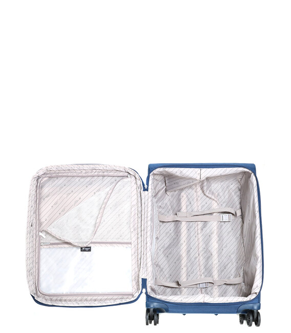 Чемоданы Airtex Gemini имеют внутреннее отделение на подкладке и два отделения. Четыре регулируемых ремня, закрепленные в одном из них, удерживают одежду и более тяжелые предметы (обувь, туалетные принадлежности) на месте в течение всего пути. Другое отделение, расположенное под крышкой, плоское и закрывается гибким лотком-сепаратором. Он имеет сетчатую стенку, благодаря которой его содержимое остается видимым. Карман с пластиковыми стенками позволяет хранить бутылки, ограничить возможные утечки жидкости, а сетчатый карман отведен для деликатного белья. В трех глубоких передних карманах легко доступны транспортные документы, материалы для чтения или даже маска и удобная подушка, защищенные от влаги обратной молнией. Чемодан ручной клади также имеет небольшой боковой карман, соединенный кабелем с портом USB A, расположенным в его верхней части. Вы можете разместить туда внешний аккумулятор (не входит в комплект), чтобы подзаряжать свои электронные устройства при любых обстоятельствах.
