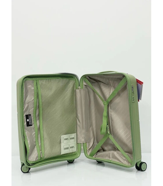 Чемодан изготовлен из 100% полипропилена, прочного устойчивого к ударам материала.