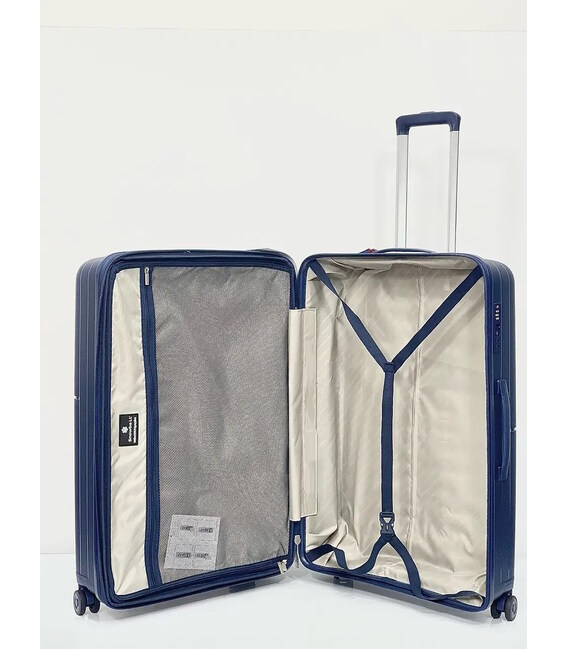 Чемодан изготовлен из 100% полипропилена, прочного устойчивого к ударам материала.
