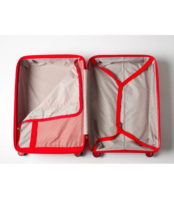 Чемодан изготовлен из 100% полипропилена, прочного устойчивого к ударам материала.