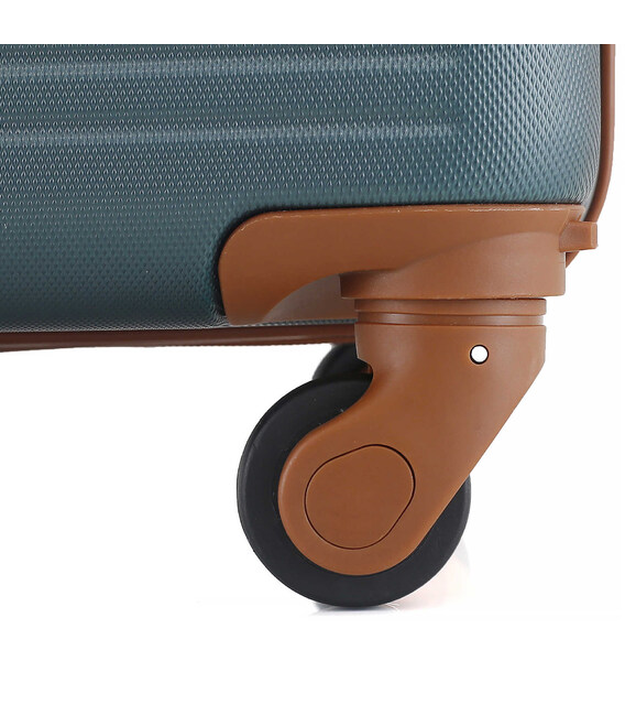- Съемные колеса - чемодан имеет съемные колеса, что позволяет уберечь их от поломки третьими лицами в багажных отделениях и при передвижении багажными лентами в аэропортах. Также, благодаря съемным колесам, чемоданы одной модели разных размеров можно компактно хранить друг в друге. Для того чтобы присоединить или отсоединить колеса от чемодана – достаточно нажать на кнопки, расположенные по периметру дна чемодана. Весь процесс занимает несколько секунд. Колеса вращаются на 360° и обеспечивают необходимую маневренность чемодану. Пластиковые пазы, куда вставляются колеса, крепятся на 4 винта изнутри, что обеспечивает высокую стойкость при ударной нагрузке с любой стороны, и позволяет их заменить при износе.