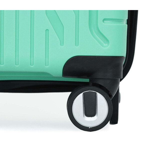 - Сдвоенные колеса - данная модель оснащена четырьмя спаренными колесами, вращающимися на 360°. Спаренные колеса обеспечивают лучшее распределение веса и устойчивость чемодана, отличное сцепление, маневренность и большую износостойкость. Колеса крепятся на 4 винта изнутри, что обеспечивает высокую стойкость при ударной нагрузке с любой стороны, и позволяет их заменить при износе.