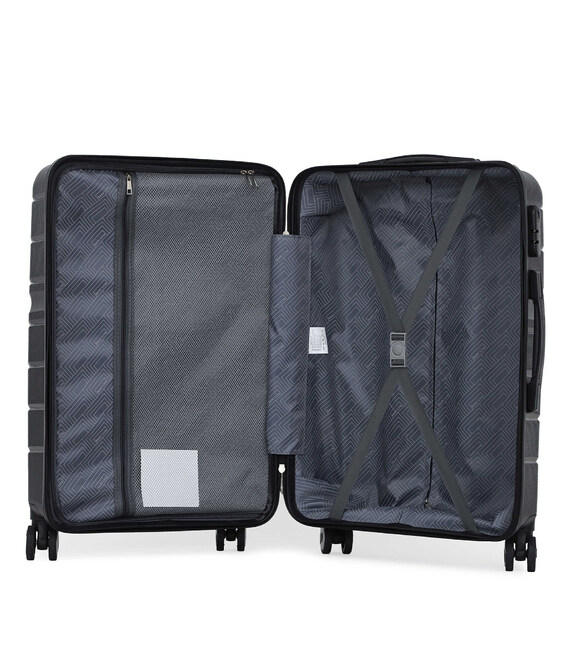 - Чемодан имеет текстильную перегородку на молнии, которая разделяет внутреннее пространство на два основных отделения, и оснащена карманом для мелких вещей.