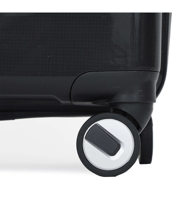 - Сдвоенные колеса - данная модель оснащена четырьмя спаренными колесами, вращающимися на 360°. Спаренные колеса обеспечивают лучшее распределение веса и устойчивость чемодана, отличное сцепление, маневренность и большую износостойкость. Колеса крепятся на 4 винта изнутри, что обеспечивает высокую стойкость при ударной нагрузке с любой стороны, и позволяет их заменить при износе.