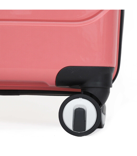 - Сдвоенные колеса - данная модель оснащена четырьмя спаренными колесами, вращающимися на 360°. Спаренные колеса обеспечивают лучшее распределение веса и устойчивость чемодана, отличное сцепление, маневренность и большую износостойкость. Колеса крепятся на 4 винта изнутри, что обеспечивает высокую стойкость при ударной нагрузке с любой стороны, и позволяет их заменить при износе.