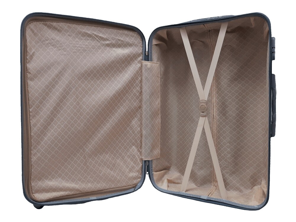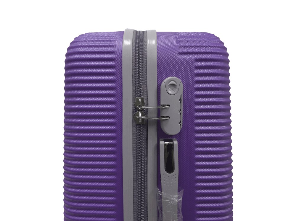 Легкая модель изготовлена из ABS-пластика. Чемодан имеет шероховатую поверхность, на которой практически не видно царапин. Модель оснащена выдвижной ручкой, кодовым замком и четырьмя колесами, вращающимися на 360 градусов. Внутри есть два отдела, которые разделяются перегородкой на молнии.