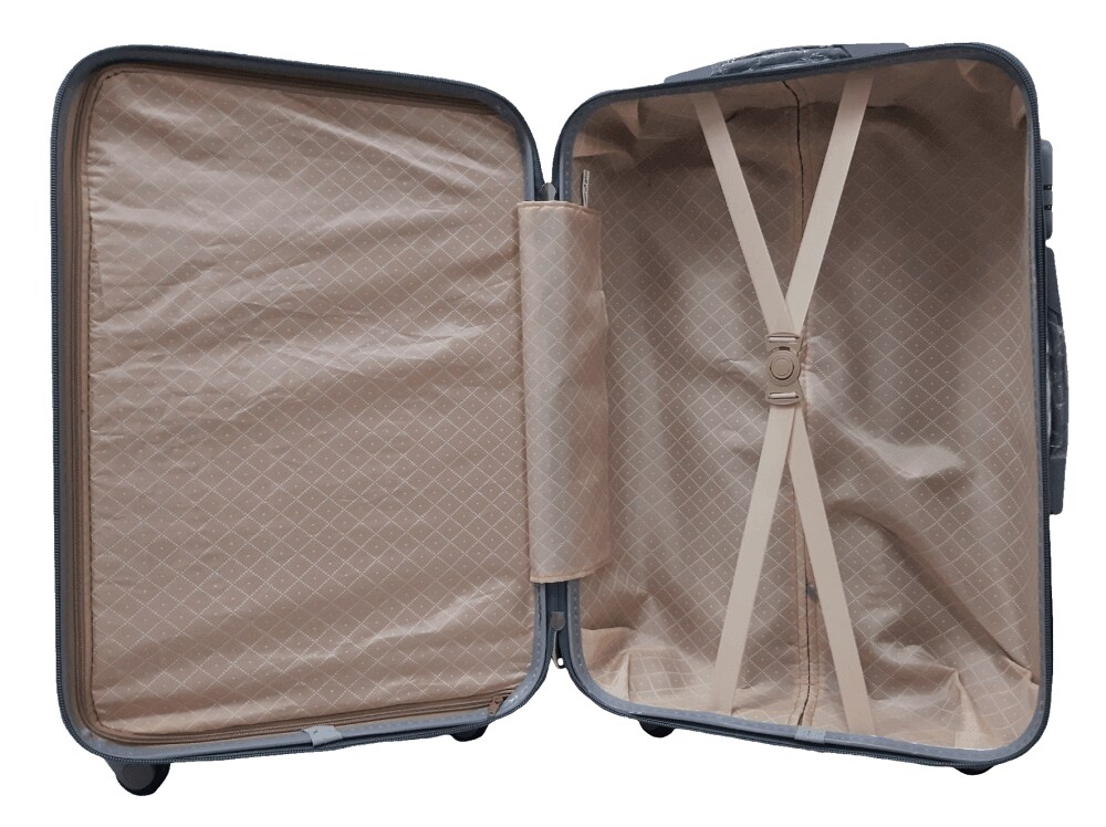 Легкая модель изготовлена из ABS-пластика. Чемодан имеет шероховатую поверхность, на которой практически не видно царапин. Модель оснащена выдвижной ручкой, кодовым замком и четырьмя колесами, вращающимися на 360 градусов. Внутри есть два отдела, которые разделяются перегородкой на молнии.