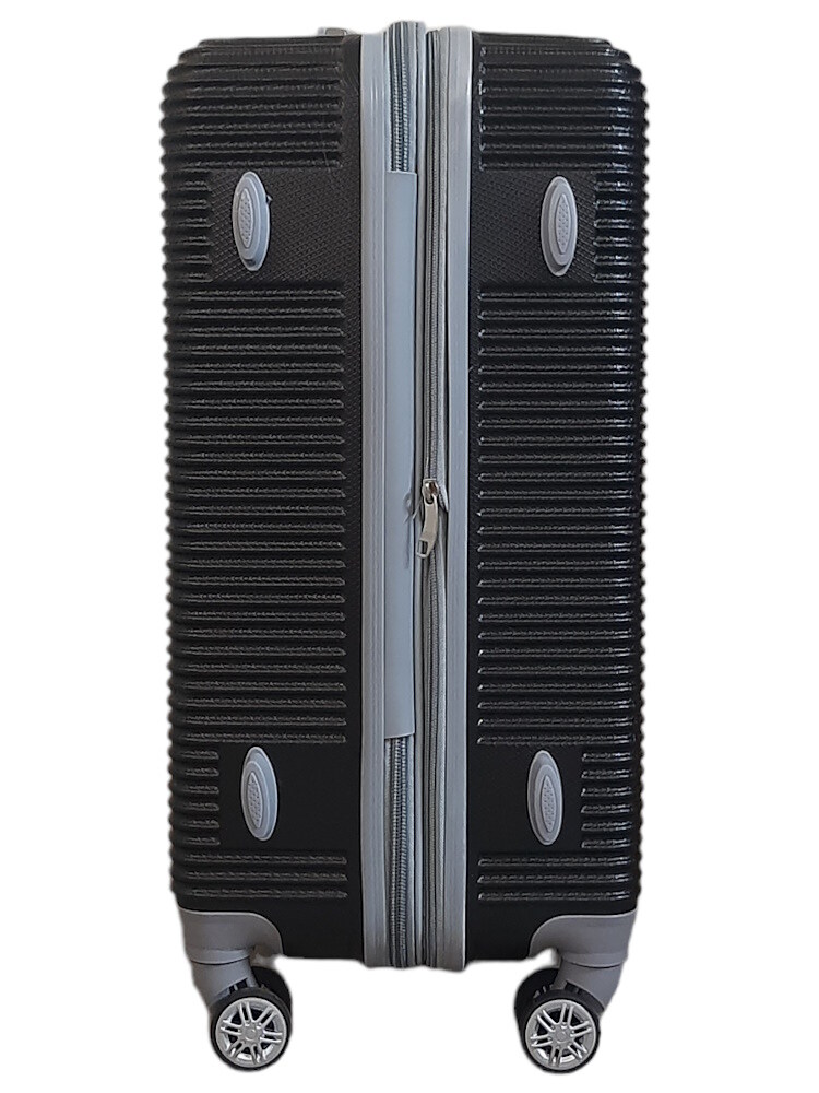 Легкая модель изготовлена из ABS-пластика. Чемодан имеет шероховатую поверхность, на которой практически не видно царапин. Модель оснащена выдвижной ручкой, кодовым замком и четырьмя двойными колесами, вращающимися на 360 градусов. Внутри есть два отдела, которые разделяются перегородкой на молнии.