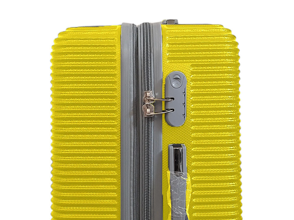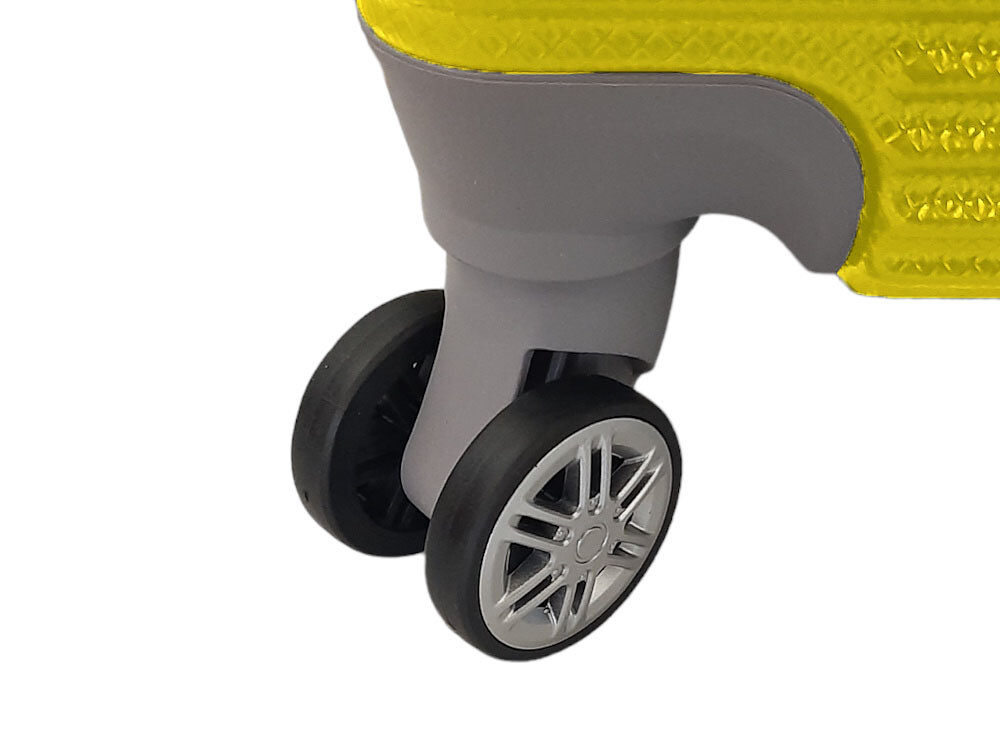 Легкая модель изготовлена из ABS-пластика. Чемодан имеет шероховатую поверхность, на которой практически не видно царапин. Модель оснащена выдвижной ручкой, кодовым замком и четырьмя двойными колесами, вращающимися на 360 градусов. Внутри есть два отдела, которые разделяются перегородкой на молнии.