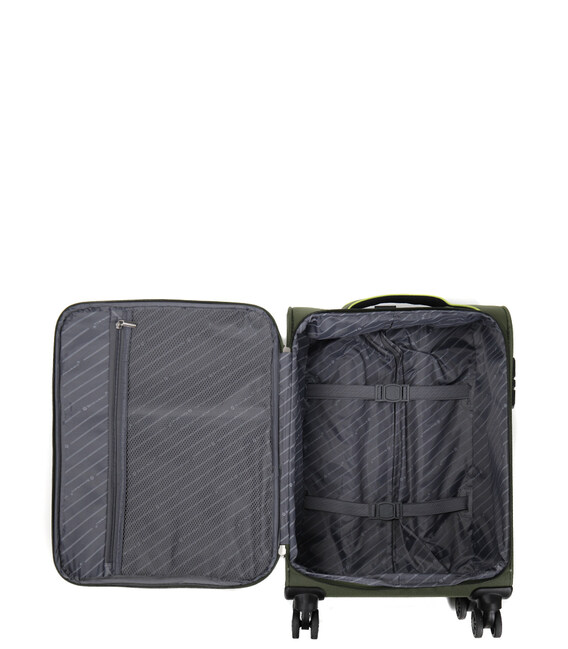 Отделение четырехколесного чемодана Snowball Montevideo оснащено 4 эластичными ремнями, позволяющими аккуратно сложить одежду во время путешествия. Сетчатый карман на подвижной перегородке позволяет сразу найти находящиеся внутри аксессуары. Два передних кармана обеспечивают быстрый доступ к билетам на поезд или самолет для малыша, а также к книгам и другим блокнотам для старшего.