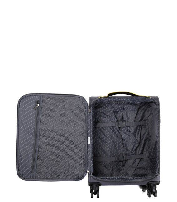 Отделение четырехколесного чемодана Snowball Montevideo оснащено 4 эластичными ремнями, позволяющими аккуратно сложить одежду во время путешествия. Сетчатый карман на подвижной перегородке позволяет сразу найти находящиеся внутри аксессуары. Два передних кармана обеспечивают быстрый доступ к билетам на поезд или самолет для малыша, а также к книгам и другим блокнотам для старшего.