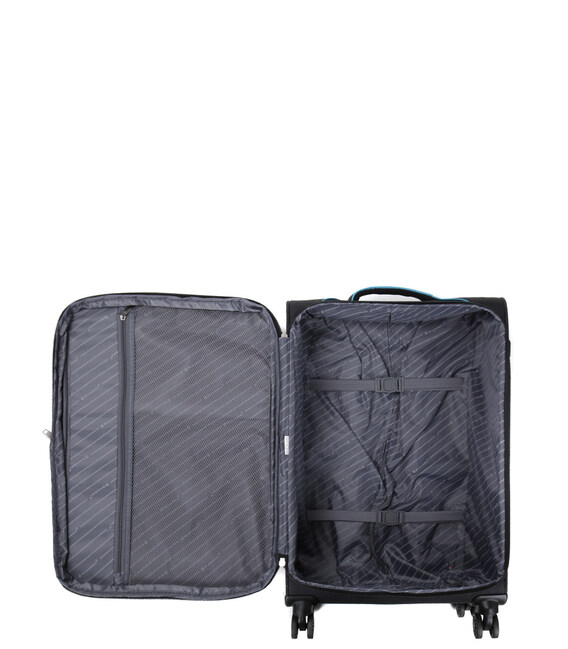 Большое отделение мягкого четырехколесного чемодана Snowball Montevideo оснащено 4 эластичными ремнями и сетчатым карманом на молнии, что упрощает организацию и гарантирует, что все останется на своих местах во время путешествия. Небольшой передний карман идеально подходит для хранения проездных документов, таких как билеты на поезд или самолет, под рукой. Для любителей чтения большой карман, расположенный чуть ниже, позволяет носить с собой несколько книг, чтобы во время отпуска вы могли полностью отвлечься от повседневной жизни.