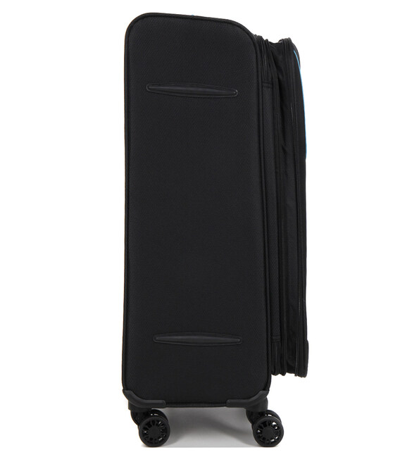 С точки зрения безопасности, расширяемый чемодан Snowball Montevideo имеет кодовый замок TSA для облегчения таможенного контроля, перфорированные язычки для подвешивания навесного замка (не входит в комплект), удерживающего молнии надежно закрытыми, а также выдвижной держатель для этикеток. Его можно удобно буксировать благодаря четырем сдвоенным колесам, которые могут вращаться на 360°, и тележке с двойной трубкой. Боковые накладки против царапин защищают покрытие. Очень легкий, его можно легко переносить по лестнице благодаря мягким ручкам.