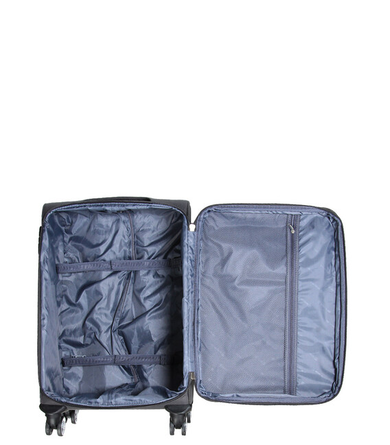 Четырехколесный чемодан Worldline Agadir имеет вместительное отделение с текстильной подкладкой, образующей эффективную защиту от влажности окружающей среды, и 4 регулируемых фиксирующих ремня, предотвращающих появление складок на хорошо сложенном белье. Большой сетчатый карман можно использовать для хранения туалетных принадлежностей, белья, шарфов... Снаружи есть 2 других кармана на молнии, которые позволяют оставить некоторые личные вещи доступными (мелкая шерсть, карман для книг, посадочный талон и т. д.).