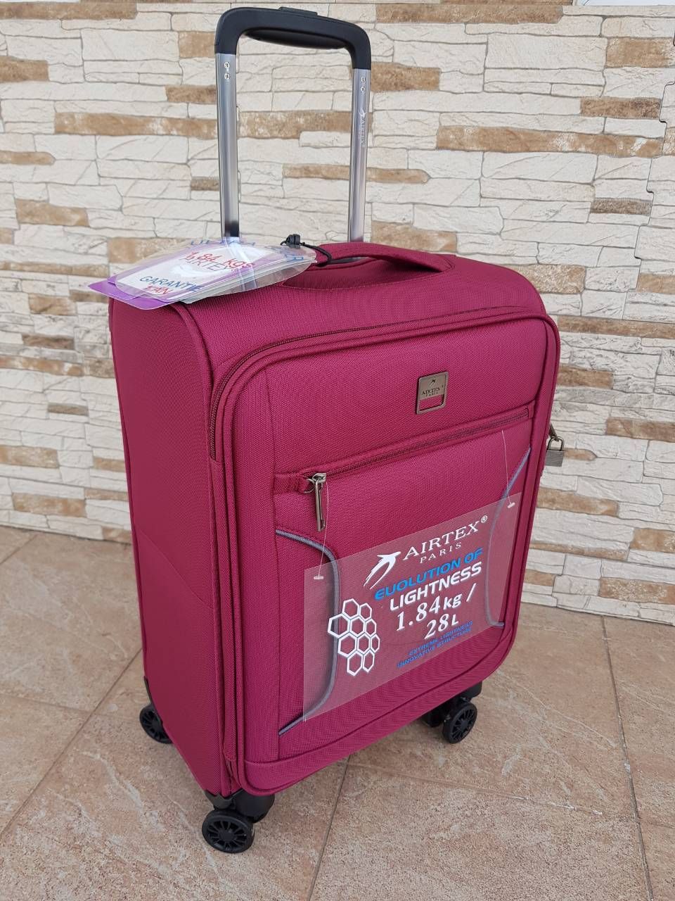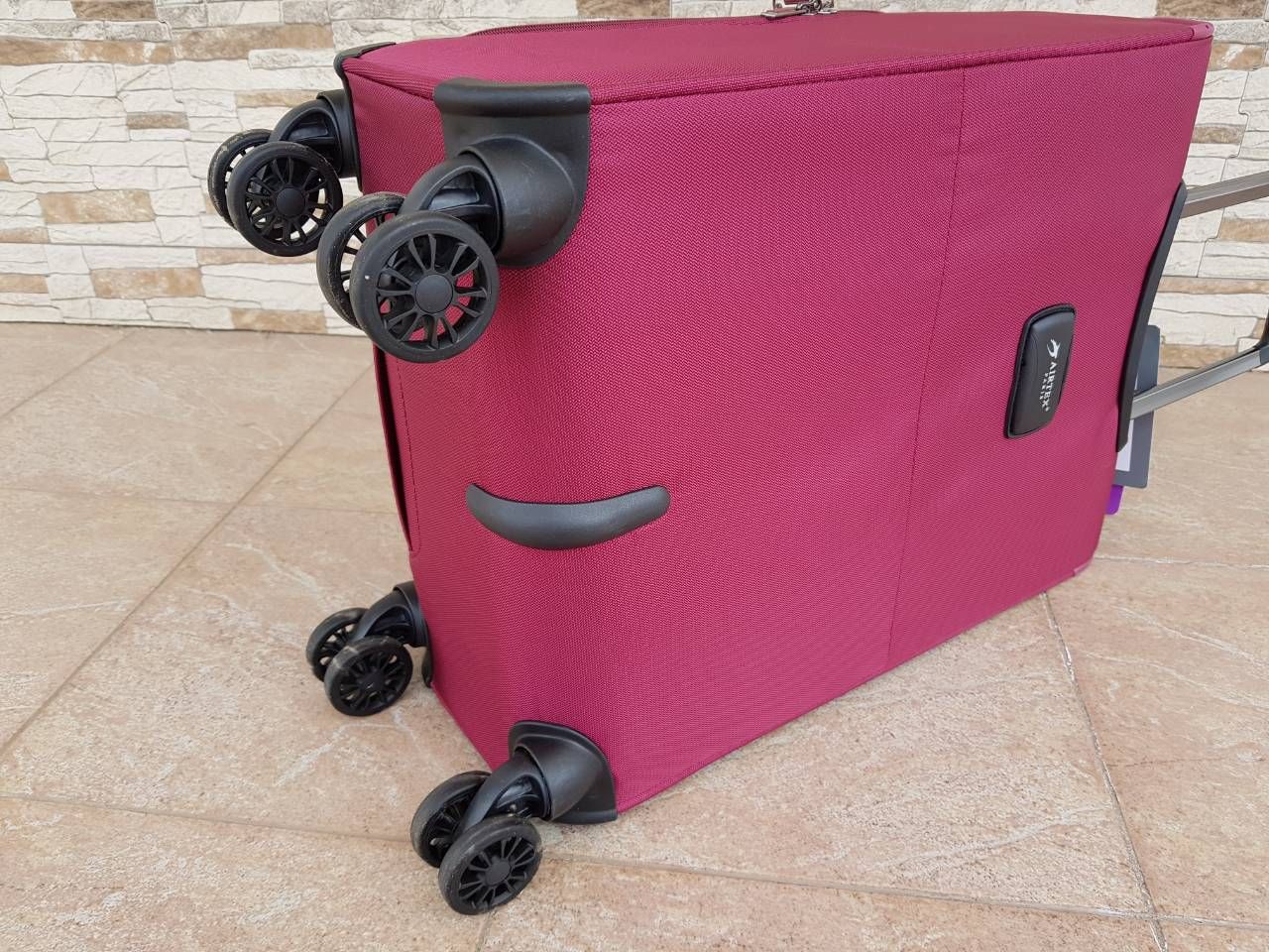 Данный чемодан изготовлен из специально разработанных легких компонентов, благодаря которым уменьшается вес чемодана, что является решением проблемы ограничения веса багажа во время авиаперелетов. Все основные элементы чемодана изготовлены из легких материалов и прочной ткани. Эта модель отличается высокой маневренностью и легкостью в управлении, благодаря четырехколесной системе (четыре колеса из прочного и бесшумного материала, вращающиеся на 360 градусов).