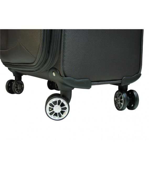 - данный чемодан оснащен 4-мя бесшумными полиуритановыми колесами (колеса двойные). Радиус вращения 360 градусов.