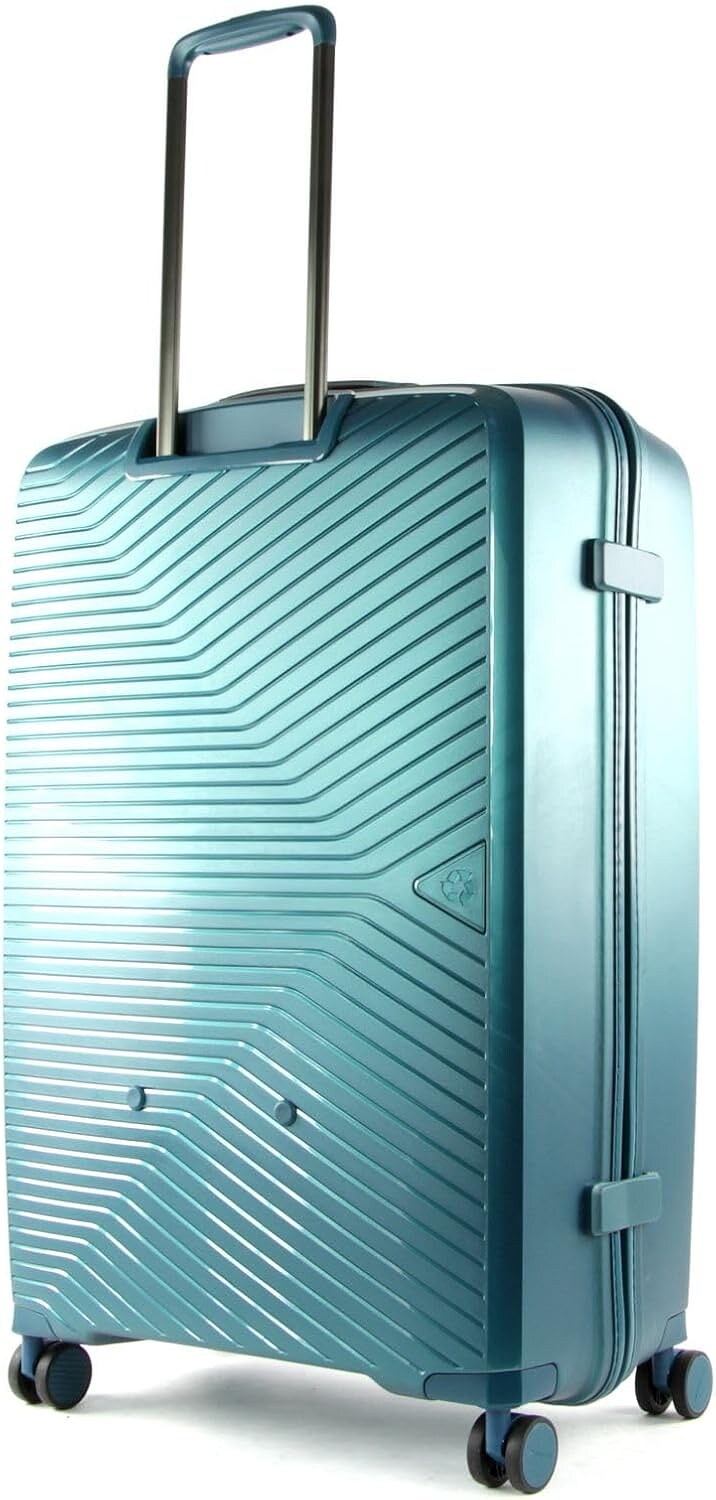 Средний чемодан оснащен четырьмя спаренными устойчивыми колесами, которые свободно вращаются на 360̊. Для удобства перемещения есть прочная телескопическая ручка, а также подъемные пластиковые ручки сверху и на боковой поверхности для удобства переноски.