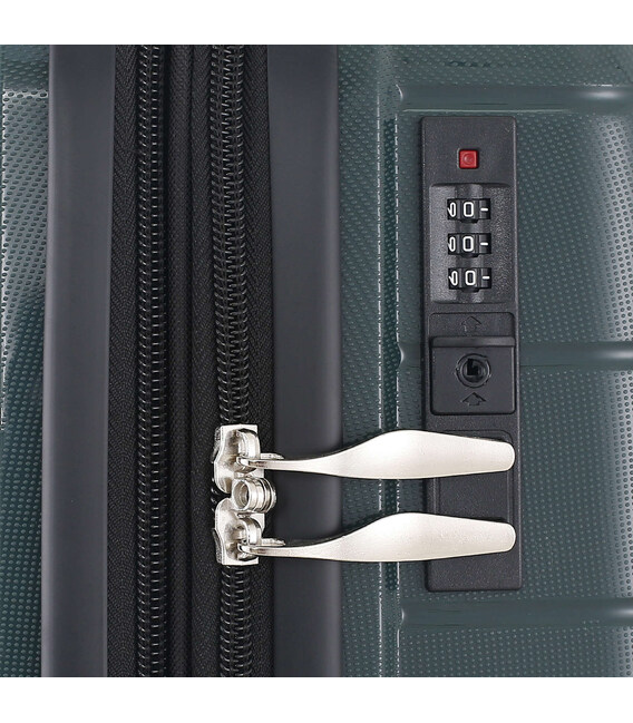 - Кодовый замок - чемодан оснащен "утопленным" кодовым замком, находящимся в одной плоскости с корпусом, и не выступающим наружу. Замок не позволяет открыть чемодан ключом или другим металлическим предметом снаружи. Замочная скважина, расположенная на замке, не имеет практического применения и сделана исключительно с декоративной целью. Замок можно открыть только зная трехзначный код.