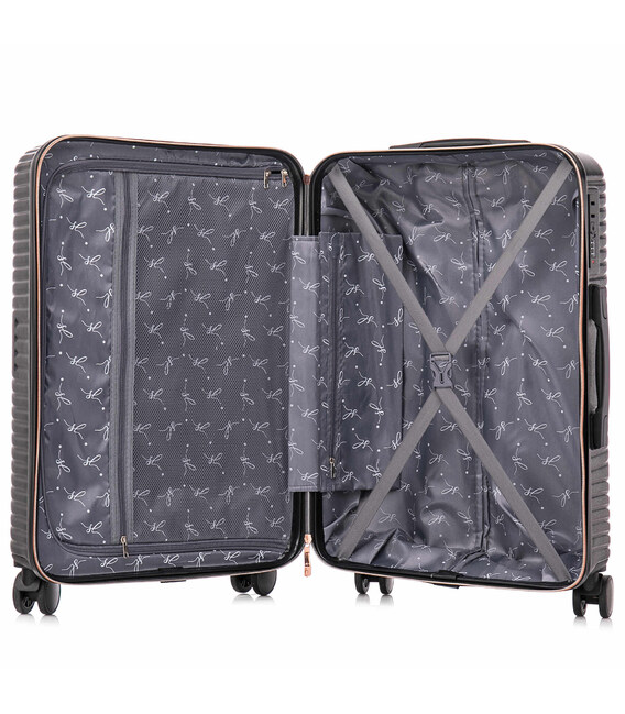 - Чемодан имеет текстильную перегородку на молнии, которая разделяет внутреннее пространство на два основных отделения. перегородка оснащена карманом на молнии для мелких вещей и документов.