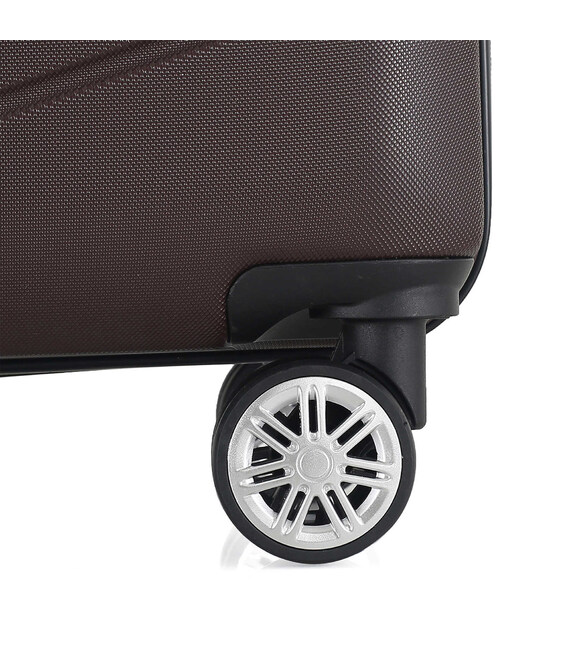 - Полноповоротные колеса - данная модель оснащена четырьмя спаренными колесами, вращающимися на 360°. Облегченные cпаренные колеса со спицами обеспечивают лучшее распределение веса и устойчивость чемодана, отличное сцепление, маневренность и большую износостойкость. Колеса крепятся на 4 винта изнутри, что обеспечивает высокую стойкость при ударной нагрузке с любой стороны, и позволяет их заменить при износе.