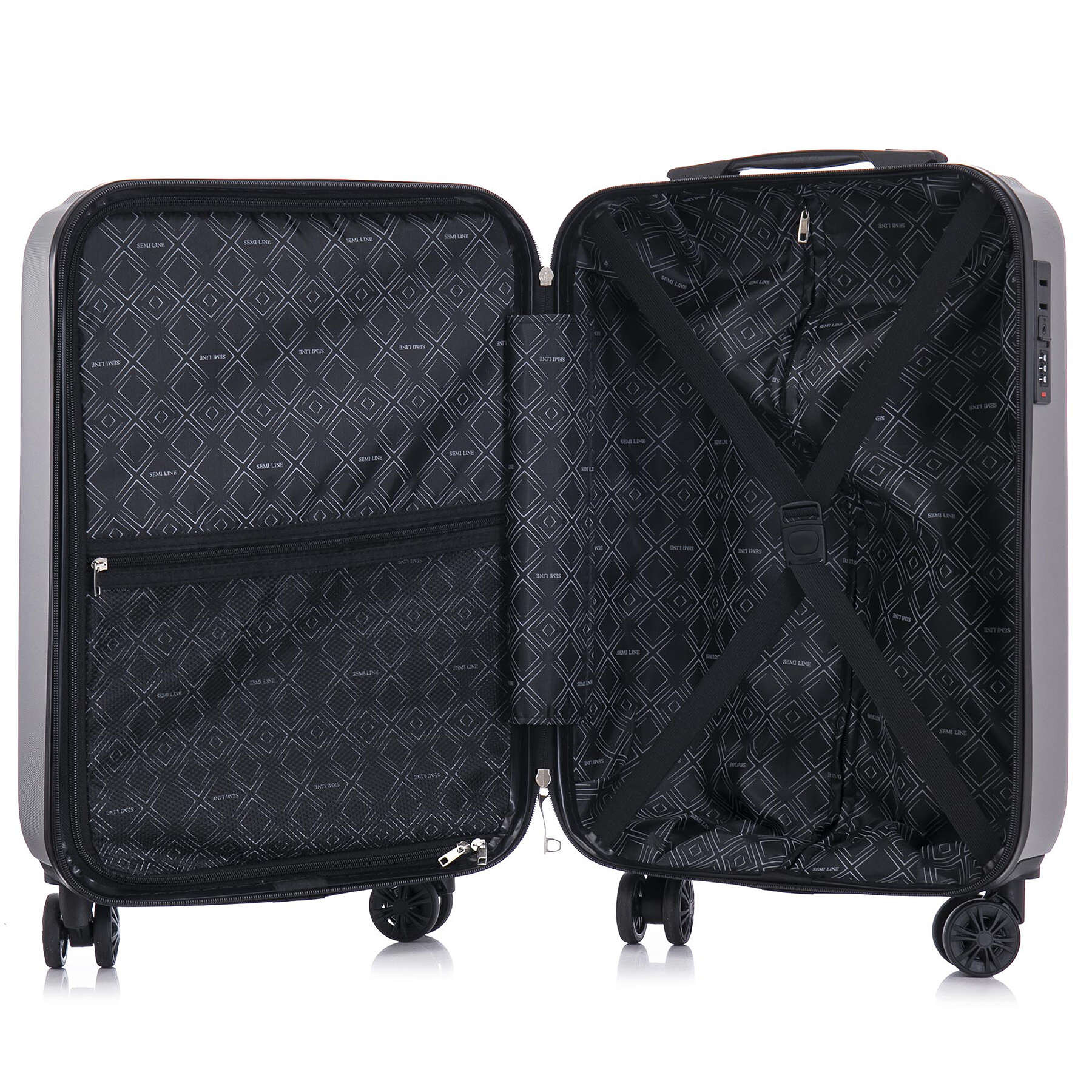 Semi Line T5857-1 выглядит максимально презентабельно и имеет в своем арсенале ряд конструктивных решений, делающих его не только привлекательным, но и функциональным. Чемодан оснащен "утопленным" кодовым замком, не выступающим над поверхностью чемодана, оснащен спаренными полноповоротными колесами, и является одним из самых легких среди своего типоразмера. Внутреннее пространство разделено текстильной перегородкой на молнии на две части, а для мелких вещей предусмотрен отдельный карман на перегородке.