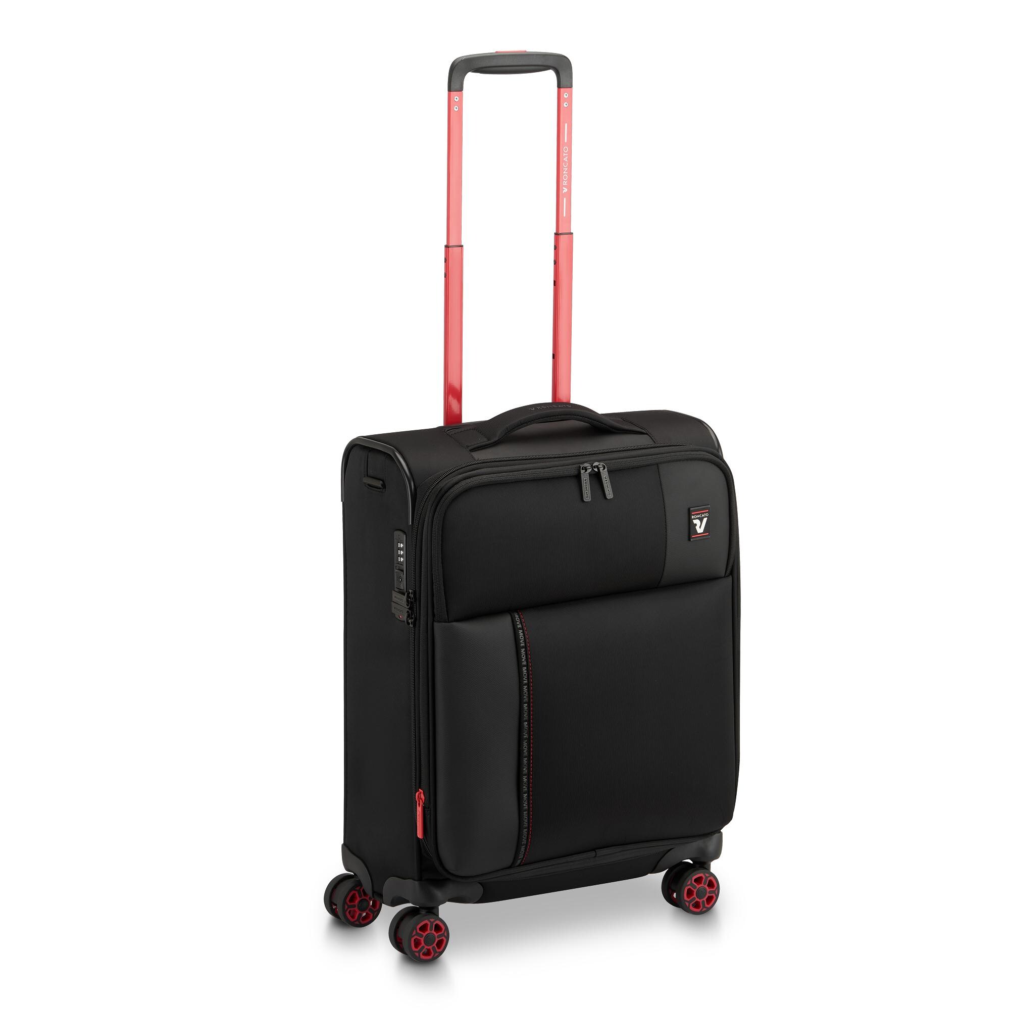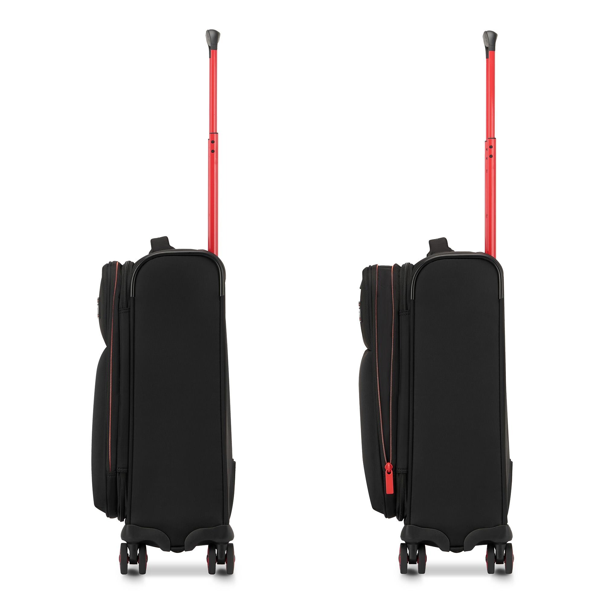 Маленький чемодан с расширяющейся системой для увеличения внутреннего пространства закрывается на двойную молнию «High tech security», которая предотвращает несанкционированное сечение чемодана. Также для безопасности багажа предусмотрен кодовый замок с TSA системой. Внутренняя часть изделий снабжена эластичными ремнями для крепления одежды, перегородками и карманами для мелких вещей. Снаружи есть еще два легкодоступных отделения, адресник и две эргономичные ручки для облегчения подъема чемодана. Также четыре спаренных колеса возвращаются на 360°.
