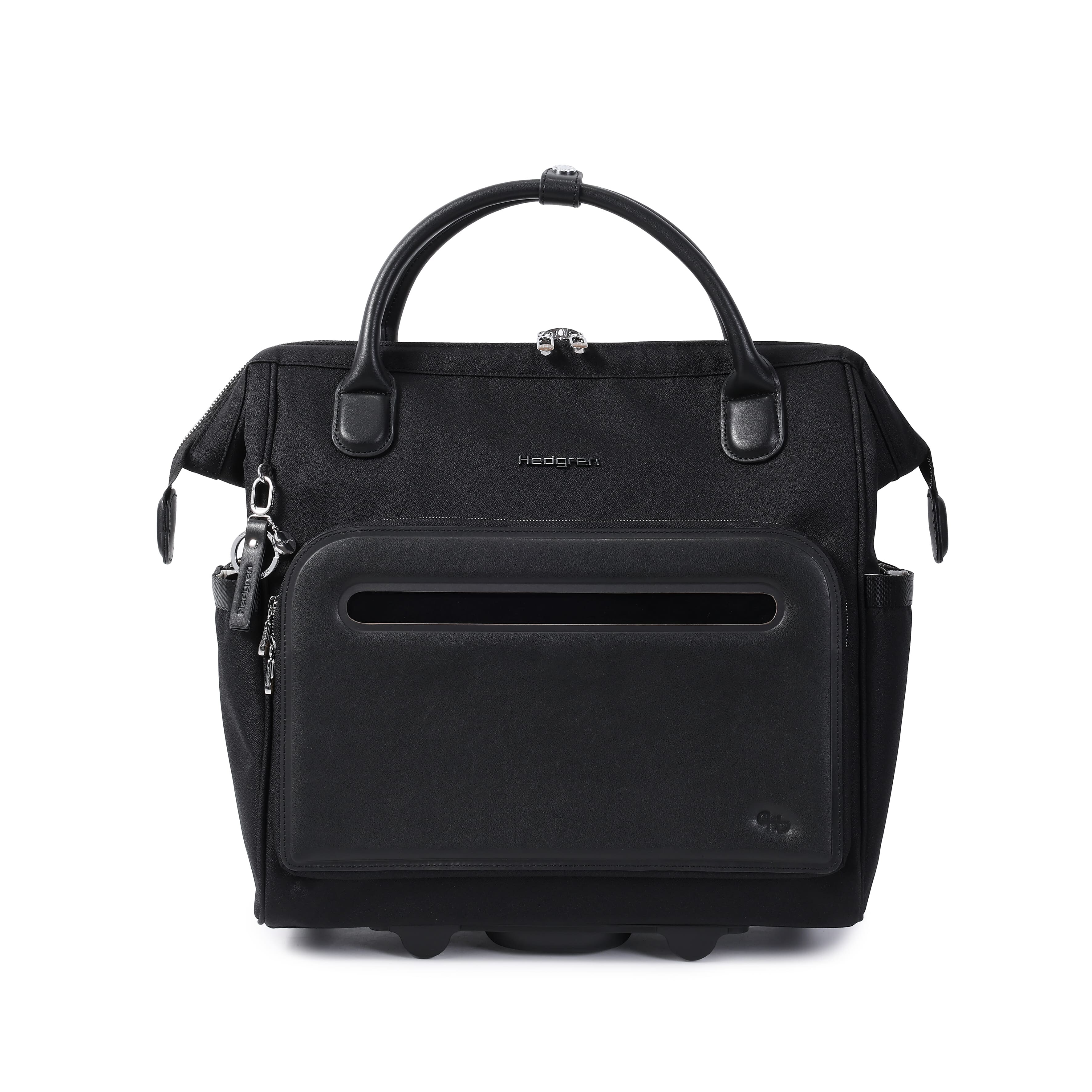 Кейс-пилот – отличное решение для бизнес-поездок. Размеры изделия позволяют взять его на борт самолета в качестве ручной клади. Выполнен из 100% переработанного полиэстера PET (полиэфирная ткань из переработанных пластиковых бутылок). Кейс-пилот оснащен основным отделом на молнии, в котором присутствует: отдел для ноутбука 15.6”, планшета, документов формата А4, пишущих предметов, смартфона. Дополнительно съемная косметичка и карман с RFID-защитой. Снаружи, присутствуют карманы + изысканная съемная вешалка для ключей. Дополнительно имеет боковые карманы с разрешением, для бутылки/зонтики. На задней части изделия умный рукав для крепления на телескопическую ручку чемодана, который при необходимости может превратиться в карман благодаря молнии. Также оснащен двумя колесами и широкой ножкой для устойчивости. Для удобства перемещения есть телескопическая ручка, которую можно спрятать у кармана на молнии, и две крепкие подъемные ручки.