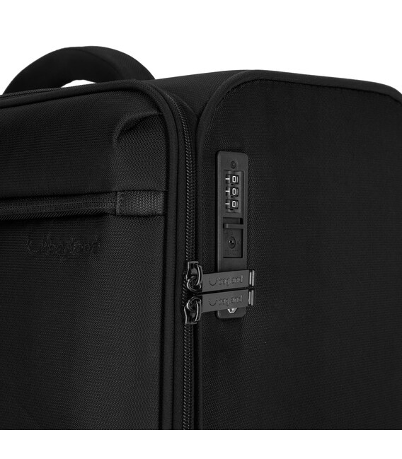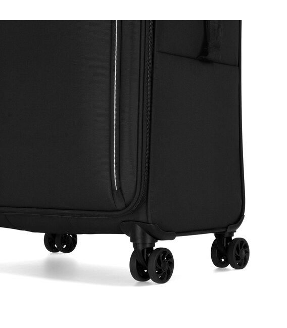 Чотири колеса, що обертаються на 360 градусів, забезпечують плавний рух валізи, навіть коли доводиться маневрувати в натовпі чи на вокзалі. Висувна верхня ручка та додаткова бічна ручка допомагають легко транспортувати валізу в будь-яких умовах.