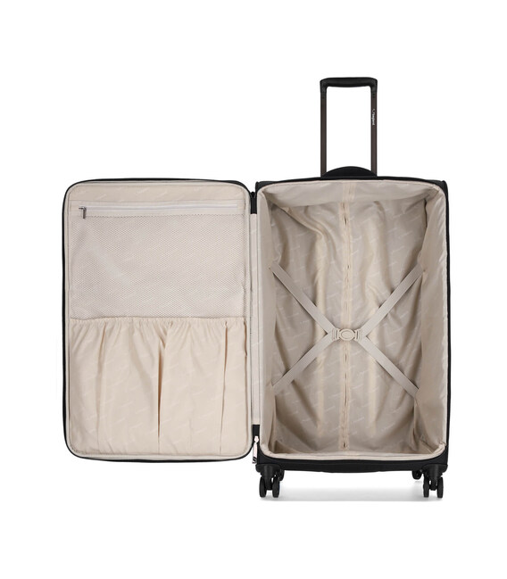Stella L — чудовий варіант для мандрівок всією сім’єю. Валіза легко вміщує багаж кількох людей, а містке відділення допомагає раціонально розмістити речі завдяки ременям-фіксаторам, кишеням-органайзерам і відсіку для дрібниць. Вбудований кодовий замок надійно захищає вміст, додаючи спокою під час подорожей.