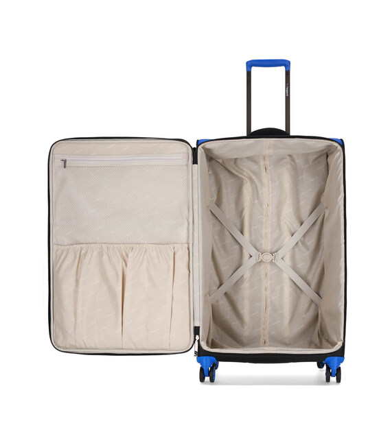 Stella L — чудовий варіант для мандрівок всією сім’єю. Валіза легко вміщує багаж кількох людей, а містке відділення допомагає раціонально розмістити речі завдяки ременям-фіксаторам, кишеням-органайзерам і відсіку для дрібниць. Вбудований кодовий замок надійно захищає вміст, додаючи спокою під час подорожей.