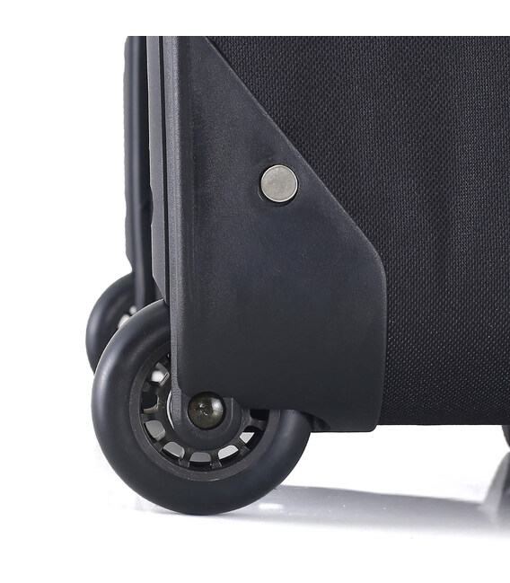 | Дополнительные характеристики | Скрытые колеса; Выдвижная телескопическая, стальная ручка фиксируется в двух положениях; Ручка в верхней части и боковой части чемодана для транспортировки в вертикальном и горизонтальном положении; Два внешних и внутренний карман; Эластичные компрессионные ремни на застежке предназначены для фиксации вещей внутри чемодана; ID-окошко для размещения инфо |