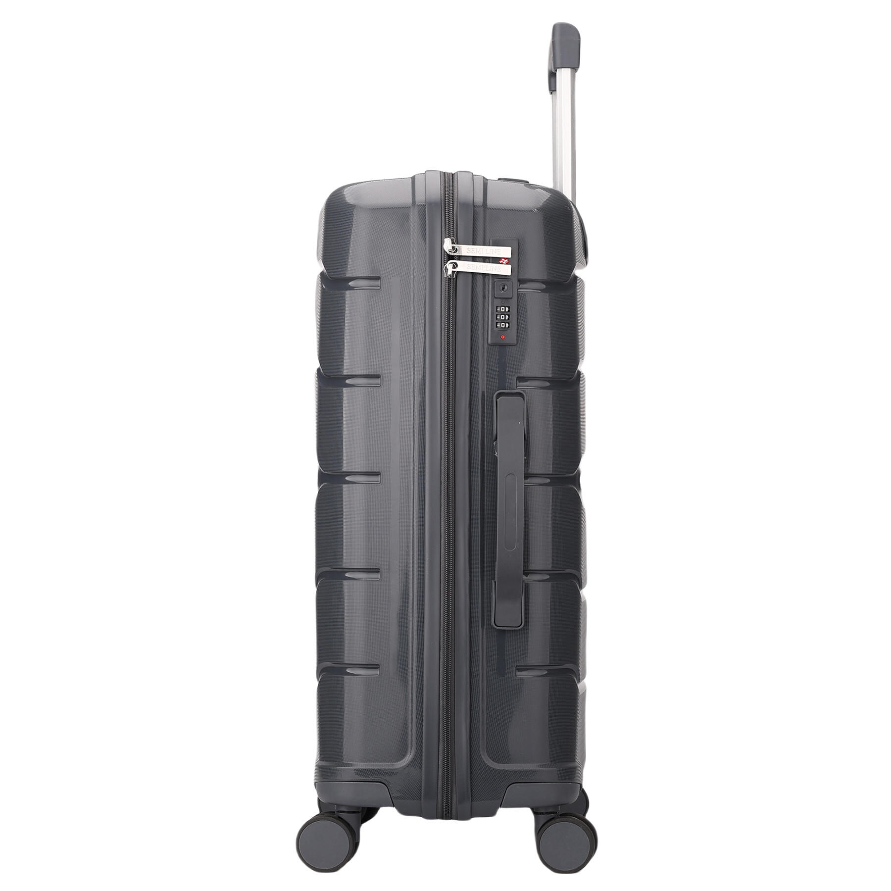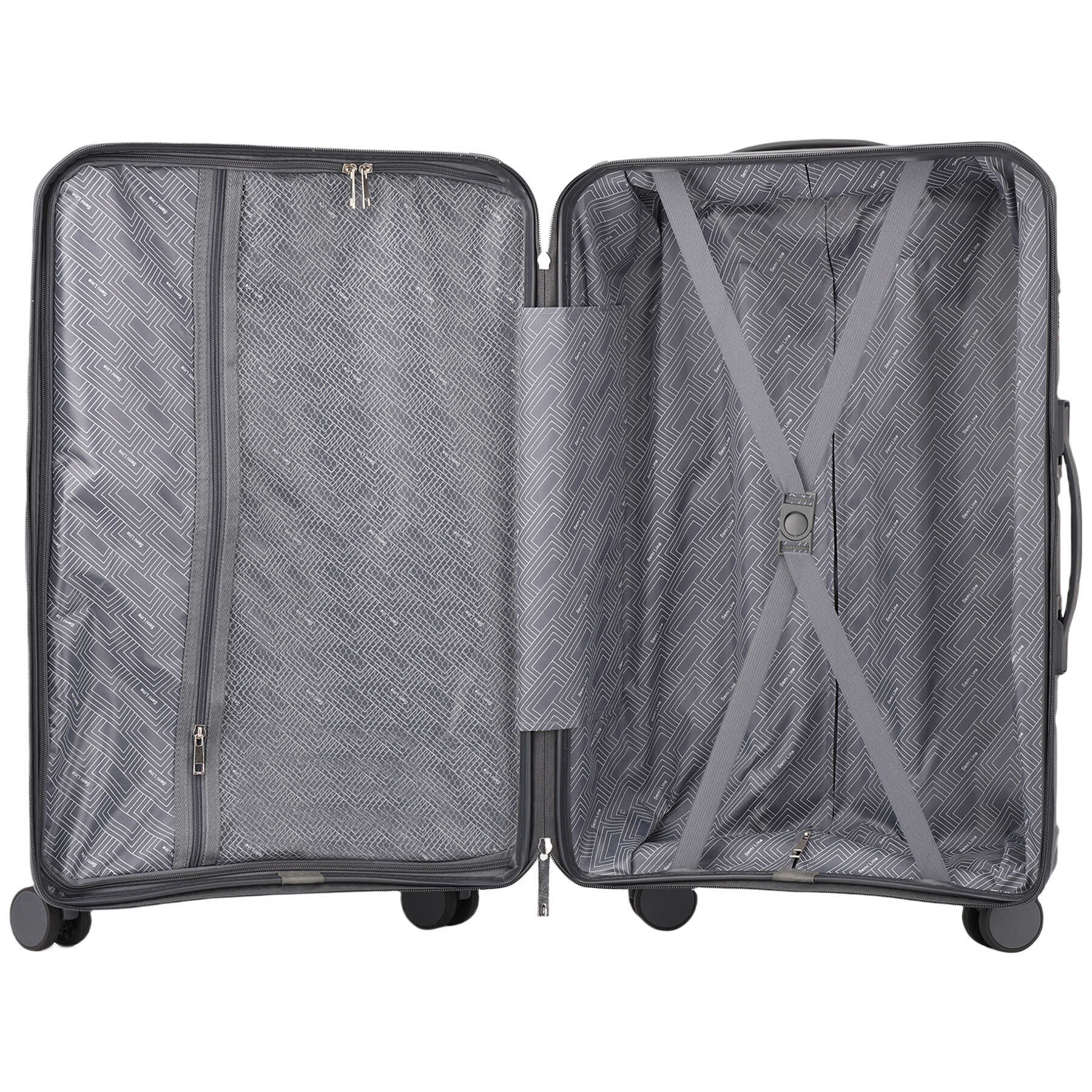 | Дополнительные характеристики | Кодовый замок; Прочный полипропиленовый корпус; Выдвижная телескопическая, алюминиевая ручка фиксируется в двух положениях; Ручки в верхней и боковой части чемодана для транспортировки в вертикальном и горизонтальном положении; Текстильная перегородка на молнии с карманом на молнии; Эластичные компрессионные ремни на фастексе предназначены для фиксации |