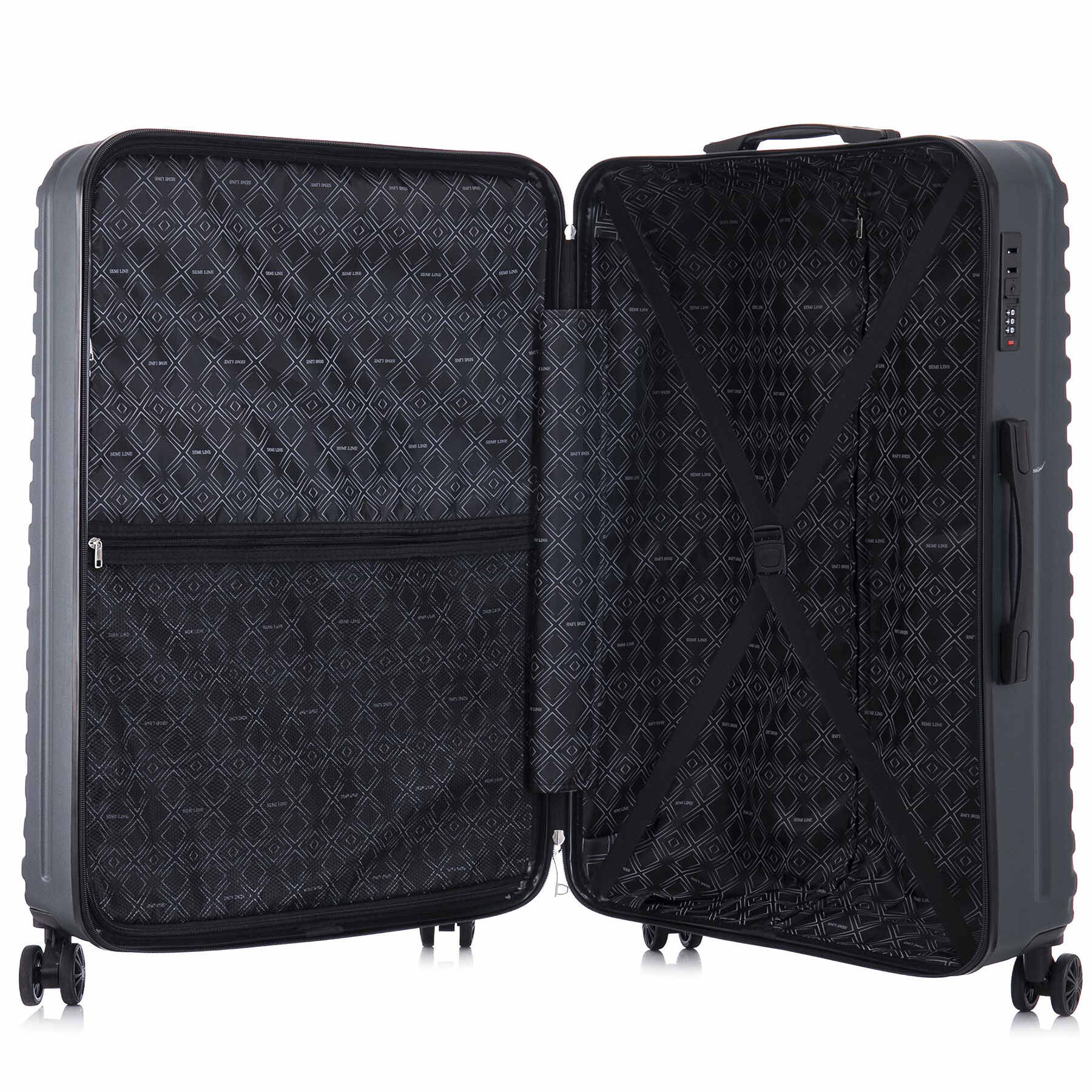 Благодаря дизайну с пересечением полос, кажется, что корпус Semi Line T5865-3 будто окутан в дорогую ткань, чемодан выглядит максимально презентабельно и имеет в своем арсенале ряд конструктивных решений, делающих его не только привлекательным, но и функциональным. Чемодан оснащен "утопленным" кодовым замком, не выступающим над поверхностью чемодана, оснащен спаренными полноповоротными колесами, и является одним из самых легких среди своего типоразмера. Внутреннее пространство разделено текстильной перегородкой на молнии на две части, а для мелких вещей предусмотрен отдельный карман на перегородке.