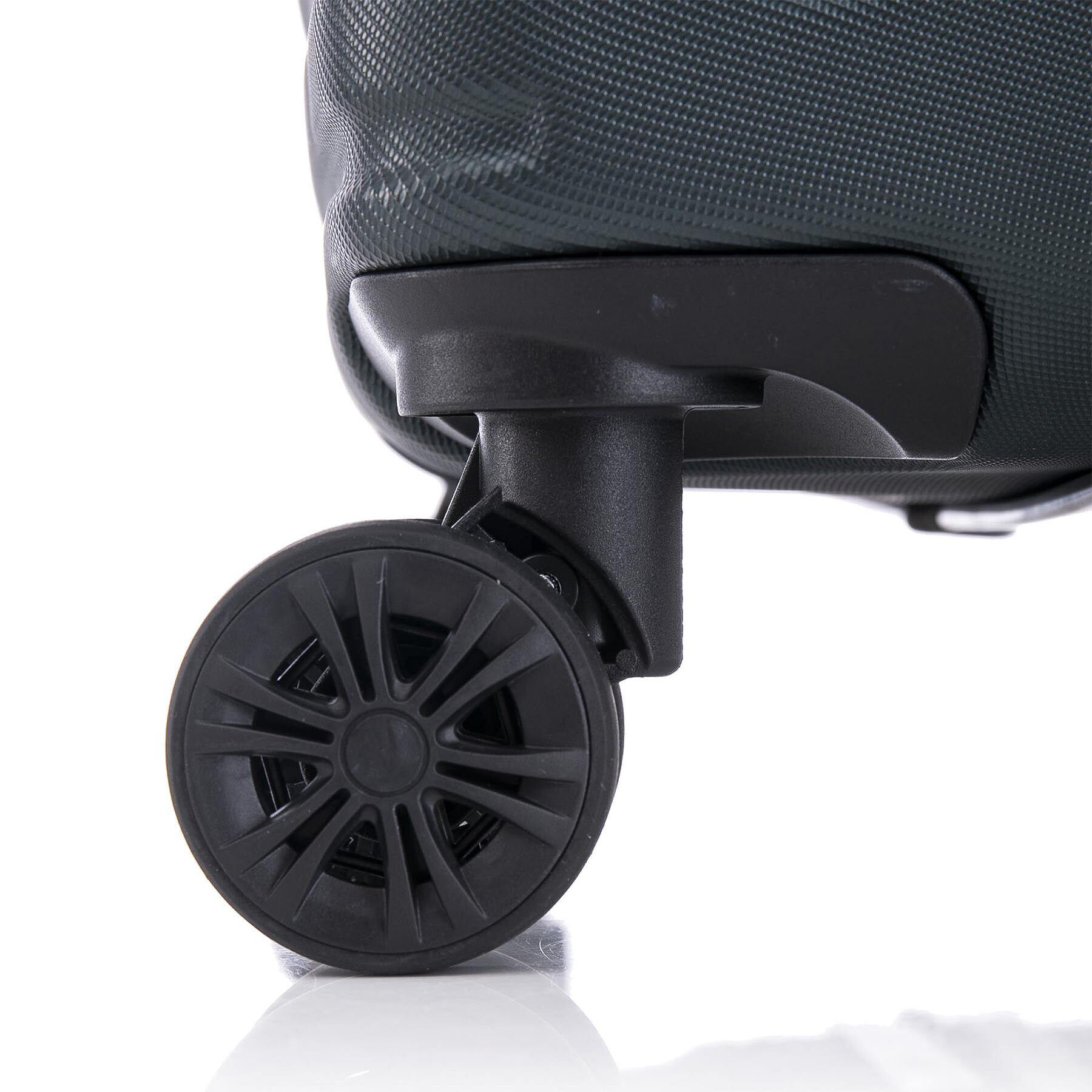 | Дополнительные характеристики | Утопленный кодовый замок; Четыре спаренных колеса обеспечивают высокую маневренность; Выдвижная телескопическая алюминиевая ручка фиксируется в трех положениях; Ручки с мягкой гелевой подложкой в верхней и боковой части части чемодана для транспортировки в вертикальном и горизонтальном положении; Текстильная перегородка с карманом на молнии; Эластичные |