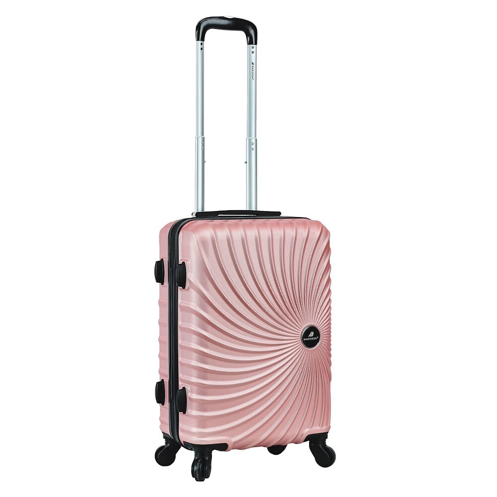 Чемодан Madisson длиной 55 см подходит для поездок продолжительностью менее недели благодаря легкому корпусу из АБС-пластика и уменьшенным размерам, которые позволяют путешествовать в салоне самолета на рейсах большинства компаний (Air France, EasyJet, Ryanair). Под современным дизайном, состоящим из рельефных линий и зернистой поверхности, скрывается функциональная планировка и практичная система буксировки. Он особенно привлекателен своей доступной ценой.