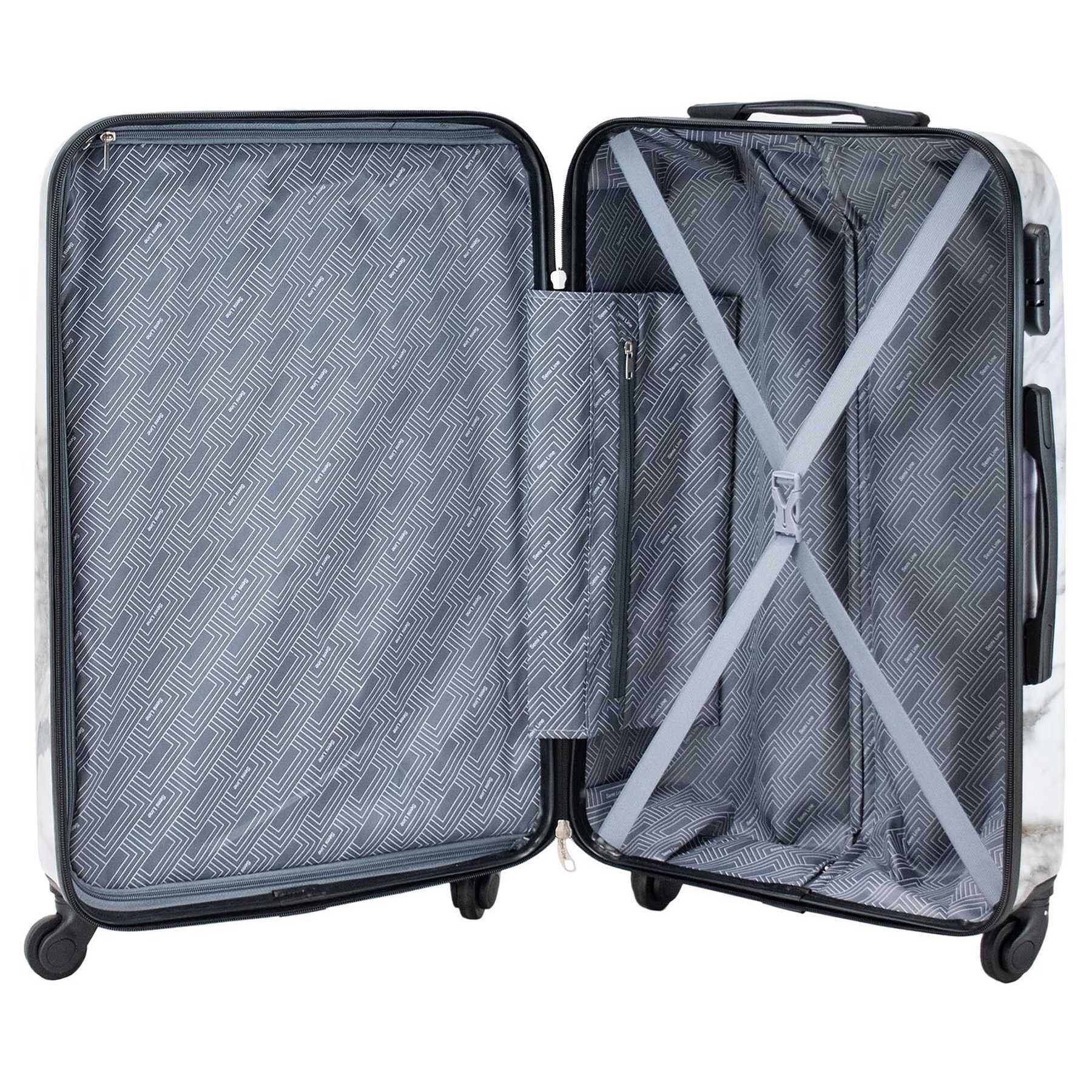 Чемодан Semi Line T5731-2 имеет гладкую глянцевую поверхность с чрезвычайно реалистичным принтом, который даже с близкого расстояния не отличим от настоящего полированного мрамора. К тому же это надежный чемодан, корпус которого сделан из прочного композита поликарбоната и ABS-пластика.