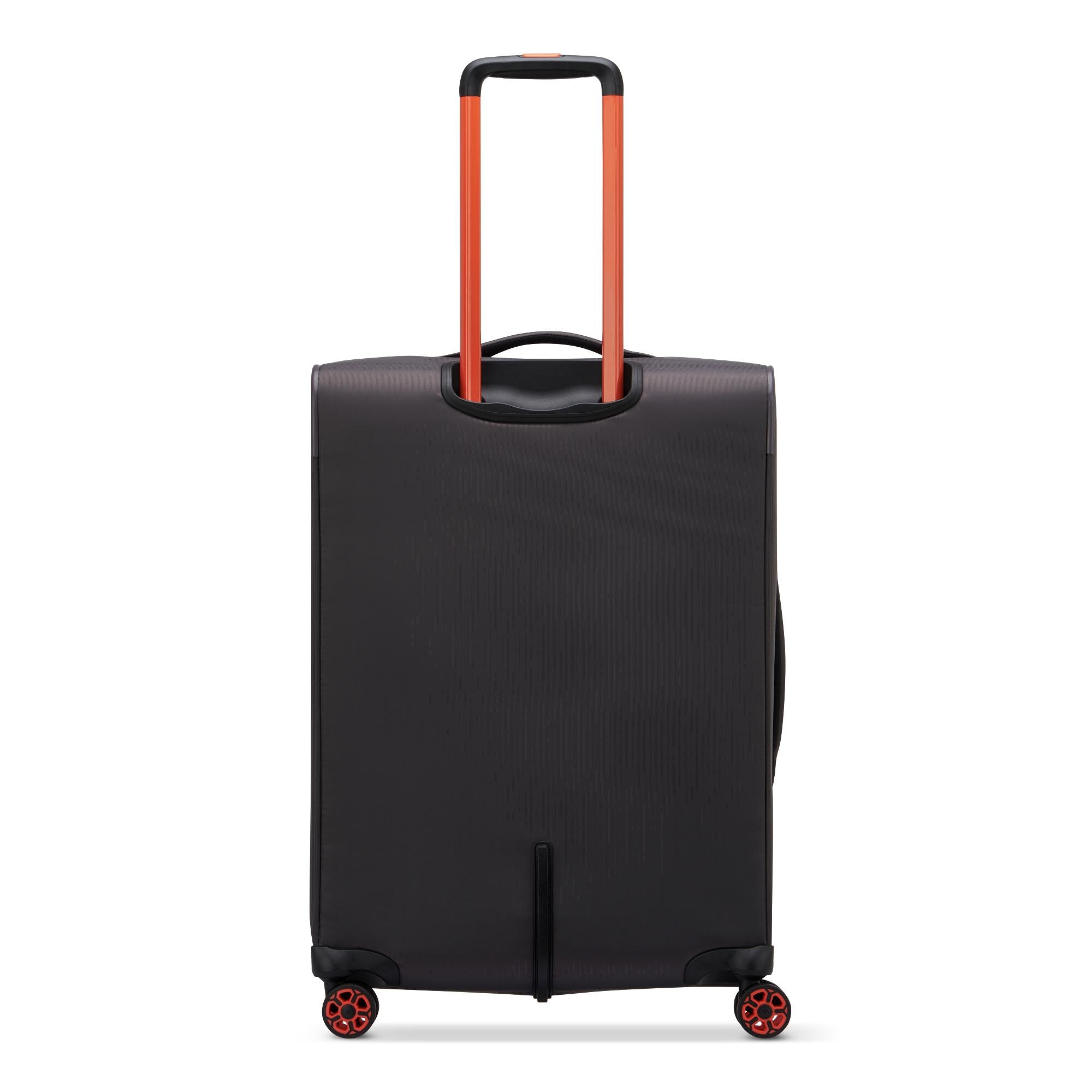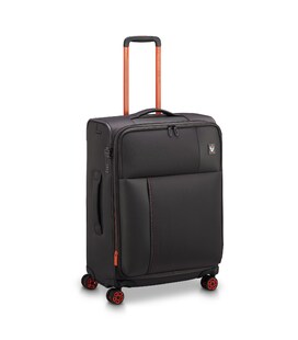 Средний чемодан с расширяющейся системой для увеличения внутреннего пространства закрывается на двойную молнию «High tech security», которая предотвращает несанкционированное сечение чемодана. Также для безопасности багажа предусмотрен кодовый замок с TSA системой. Внутренняя часть изделий снабжена эластичными ремнями для крепления одежды, перегородками и карманами для мелких вещей. Снаружи есть еще два легкодоступных отделения, адресник и две эргономичные ручки для облегчения подъема чемодана. Также четыре спаренных колеса возвращаются на 360°.