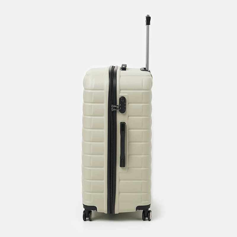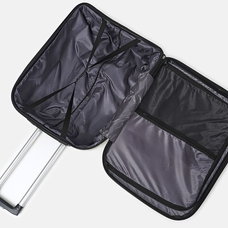 Модель оснащена спаренными колесами, вращающимися на 360°. Выдвижная телескопическая, алюминиевая ручка с двумя уровнями фиксации. Кодовый замок, для защиты ваших личных вещей. Две ручки из силикона в верхней и боковой части чемодана для транспортировки в вертикальном и горизонтальном положении. Пластиковые ножки для расположения чемодана в горизонтальноим положении. Чемодан имеет 1 основное отделение с перегородкой из полиэстра, на перегородке имеется 1 дополнительное сетчатое отделение. Эластичные компрессионные ремни на фастексе предназначены для фиксации вещей внутри чемодана. Также чемодан имеет молнию на подкладке с двух сторон, для доступа к внутреней части чемодана где находятся колёса и механизм ручки. Высота чемодана без учета колес - 68см.