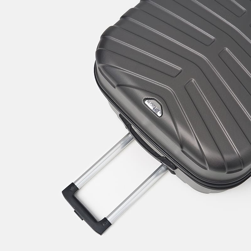 Модель оснащена спаренными колесами, вращающимися на 360°. Выдвижная телескопическая, алюминиевая ручка с двумя уровнями фиксации. Кодовый замок, для защиты ваших личных вещей. Две ручки из силикона в верхней и боковой части чемодана для транспортировки в вертикальном и горизонтальном положении. Пластиковые ножки для расположения чемодана в горизонтальноим положении. Чемодан имеет 1 основное отделение с перегородкой из полиэстра, на перегородке имеется 1 дополнительное сетчатое отделение. Эластичные компрессионные ремни на фастексе предназначены для фиксации вещей внутри чемодана. Также чемодан имеет молнию на подкладке с двух сторон, для доступа к внутреней части чемодана где находятся колёса и механизм ручки. Высота чемодана без учета колес - 68см.