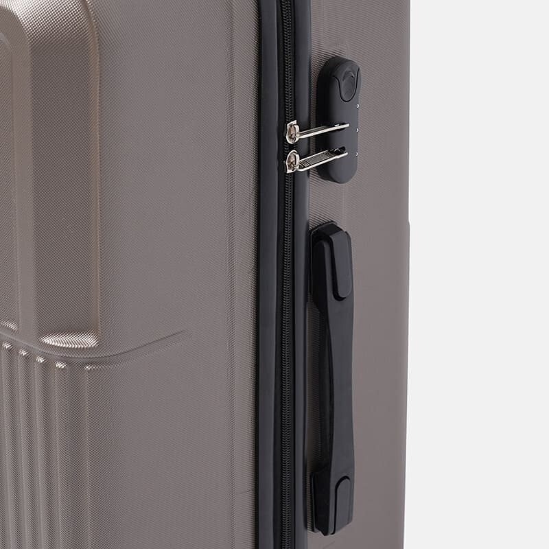 Модель оснащена спаренными колесами, вращающимися на 360°. Выдвижная телескопическая, алюминиевая ручка с двумя уровнями фиксации. Кодовый замок, для защиты ваших личных вещей. Две ручки из силикона в верхней и боковой части чемодана для транспортировки в вертикальном и горизонтальном положении. Чемодан имеет 1 основное отделение с перегородкой из полиэстра, на перегородке имеется 1 дополнительное отделение. Эластичные компрессионные ремни на фастексе предназначены для фиксации вещей внутри чемодана. Также чемодан имеет молнию на подкладке для доступа к внутреней части чемодана где находятся колёса и механизм ручки. Высота чемодана без учета колес - 68см.