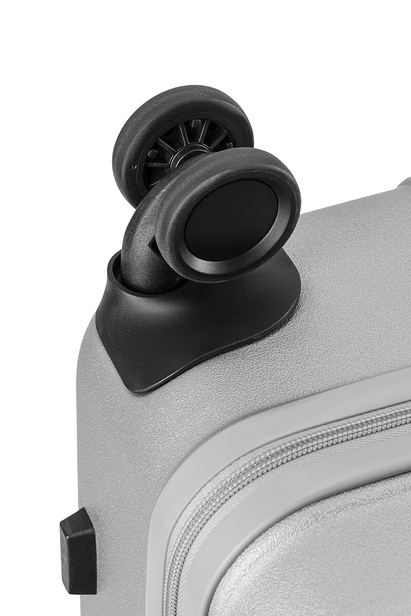Чемодан оснащен 4 двойными колесами, которые обеспечивают фантастическую маневренность по всем направлениям, также колеса выполнены из мягкой, но прочной и тихой смеси, которые поддерживаются двойными герметичными картриджными подшипниками для дополнительной плавности и более длительного срока службы. Изнутри POP полностью оснащен разделителями для вещей, ремнями и практичными карманами. Для удобства перемещения выдвижная телескопическая ручка и подъемные ручки на верхней и боковой поверхностях. Аксессуар оснащен встроенным кодовым замком с системой TSA.