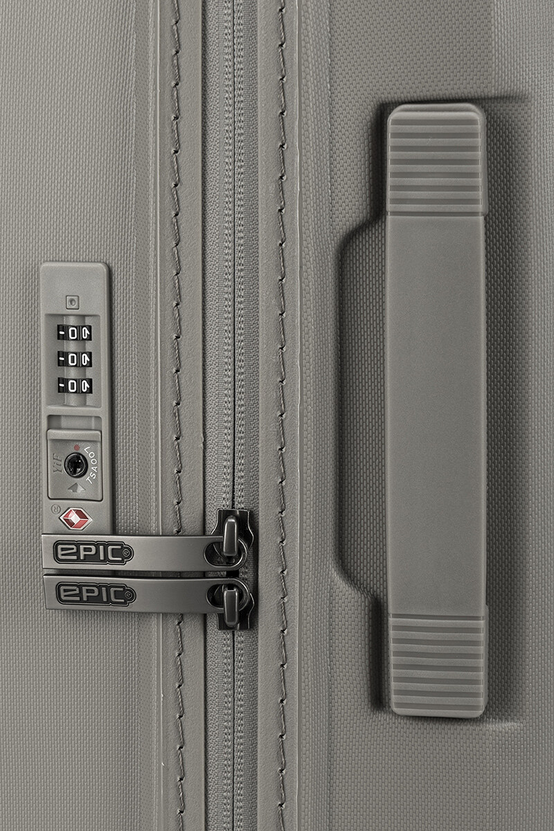 Чемодан оснащен четырьмя двойными колесами с улучшенной маневренностью, также колеса выполнены из мягкой, но прочной и тихой смеси, которые поддерживаются двойными герметичными картриджными подшипниками для дополнительной плавности и более длительного срока службы. Дополнительно, колеса имеют EPIC Standard™ – система легкосменных колес. Еще из особенностей данной модели - это молния, высокая водонепроницаемость благодаря своей прорезиненной поверхности и отвечающая самым высоким стандартам гибкости и долговечности в эксплуатации. Для удобства перемещения имеются выдвижные телескопические ручки и подъемные ручки на верхней и боковой поверхностях.