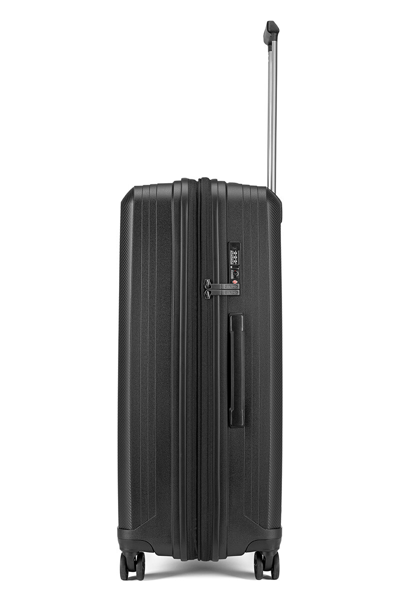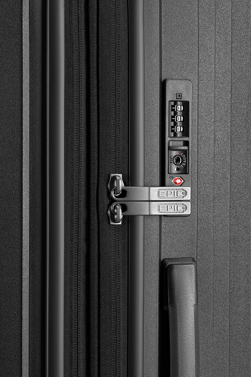 Чемодан оснащен четырьмя двойными колесами с улучшенной маневренностью, также колеса выполнены из мягкой, но прочной и тихой смеси, которые поддерживаются двойными герметичными картриджными подшипниками для дополнительной плавности и более длительного срока службы. Дополнительно, колеса имеют EPIC Standard™ – система легкосменных колес. Еще из особенностей данной модели - это молния, высокая водонепроницаемость благодаря своей прорезиненной поверхности и отвечающая самым высоким стандартам гибкости и долговечности в эксплуатации. Для удобства перемещения имеются выдвижные телескопические ручки и подъемные ручки на верхней и боковой поверхностях. Также изделие имеет расширение, что позволяет увеличить объем чемодана.
